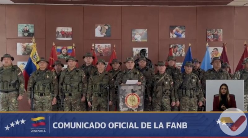 FANB tacha de “secuestro” detención de Nicolás Maduro y exige su liberación junto a Cilia Flores