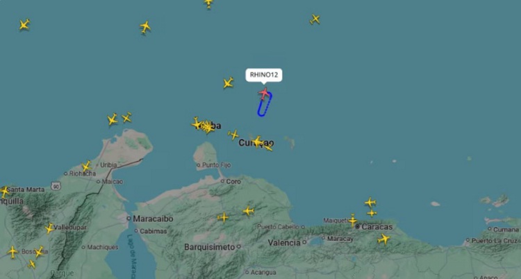 De acuerdo con los registros de la plataforma FlightRadar24, dos aviones identificados con los indicativos “RHINO11” y “RHINO12” fueron observados sobre el espacio aéreo del norte de Curazao y frente al estado venezolano de Falcón.