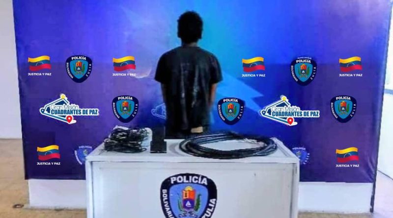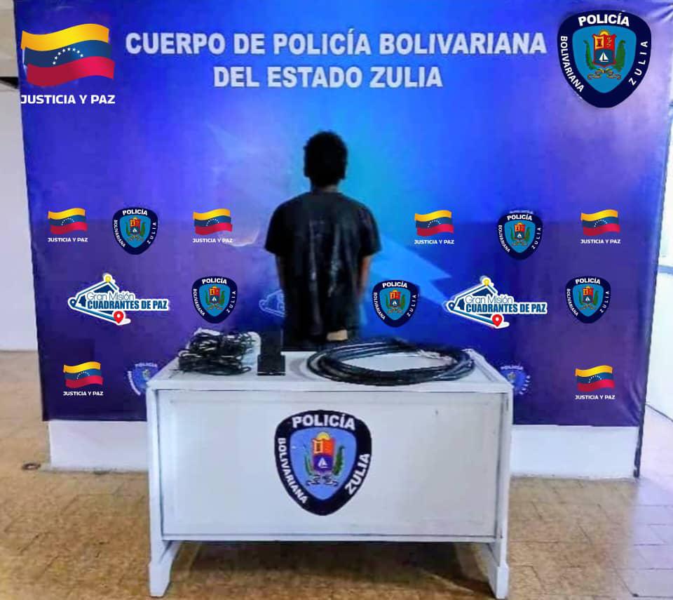 En el sector conocido como Parcela de Maita, parroquia Gibraltar, municipio Sucre, fue detenido alias “El Diablo” de nombre Yoserlandi Mercado Balza, de 19 años de edad, denunciado por sustraer parte del cable eléctrico de una propiedad privada.