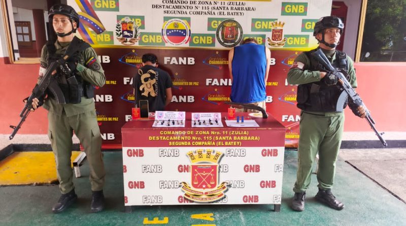 Treinta y cuatro envoltorios de presunta droga tipo marihuana, incautaron efectivos de la GNB de la Segunda Compañía del Destacamento D-115 CZGNB-11 de El Batey, municipio Sucre del estado Zulia, logrando detener a dos hombres que las cargaban en sus pertenencias.