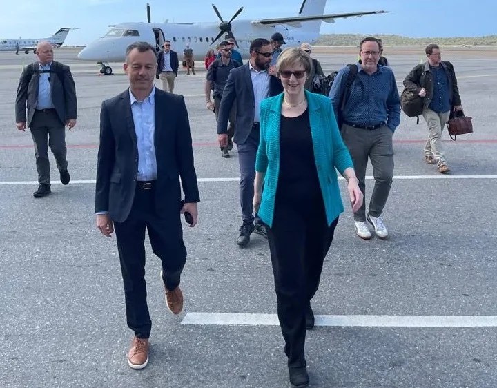 La embajada de Estados Unidos en Venezuela compartió, a través de su cuenta en X, dos fotografías de Dogu bajando del avión en el Aeropuerto Internacional Simón Bolívar de Maiquetía, que sirve a la capital venezolana.