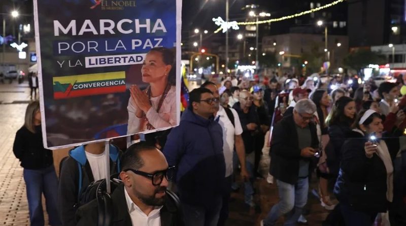 En Bogotá, la manifestación de apoyo responde al llamado que hizo Machado el jueves pasado a los venezolanos en el mundo a marchar «por la paz y la libertad», justo cuatro días antes de la entrega, en Noruega, del Nobel de la Paz 2025, concedido a la exdiputada opositora.