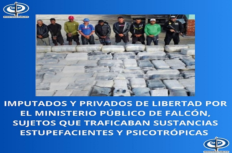 El Fiscal General de la República Tarek William Saab, informó que fueron aprehendidos para ser imputados por el Ministerio Público, los ocho sujetos atrapados por el delito de Tráfico Agravado de Sustancias Estupefacientes y Psicotrópicas en el sector Pico de Zamuro, a 88 millas de municipio Silva, estado Falcón.