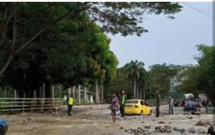 Tras fuertes lluvias en la zona, ocasionó el desbordamiento de la Quebrada Blanca, en la carretera Panamericana, parroquia Héctor Amable Mora del municipio Alberto Adriani, la mañana de este lunes.