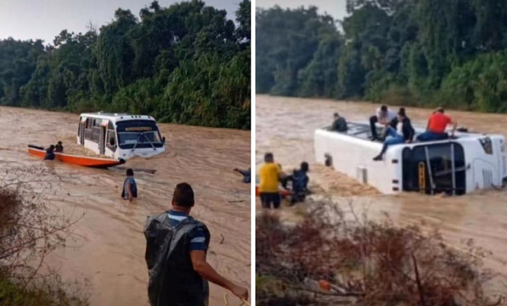Río crecido arrastra una buseta de pasajeros en Apure