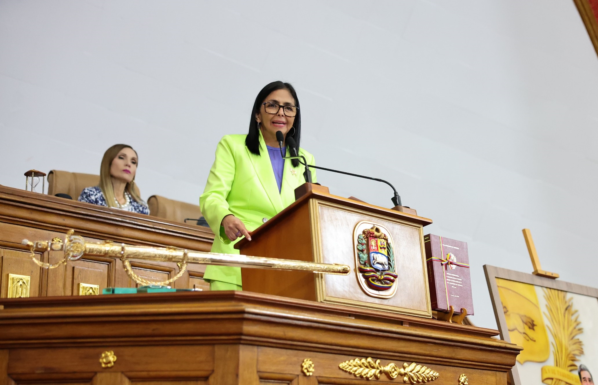 La presidenta encargada, Delcy Rodríguez, inició la tarde de este jueves la presentación del mensaje anual del presidente Nicolás Maduro, previo a lo cual ofreció unas palabras en las que hizo referencia a la relación de Venezuela con Estados Unidos.